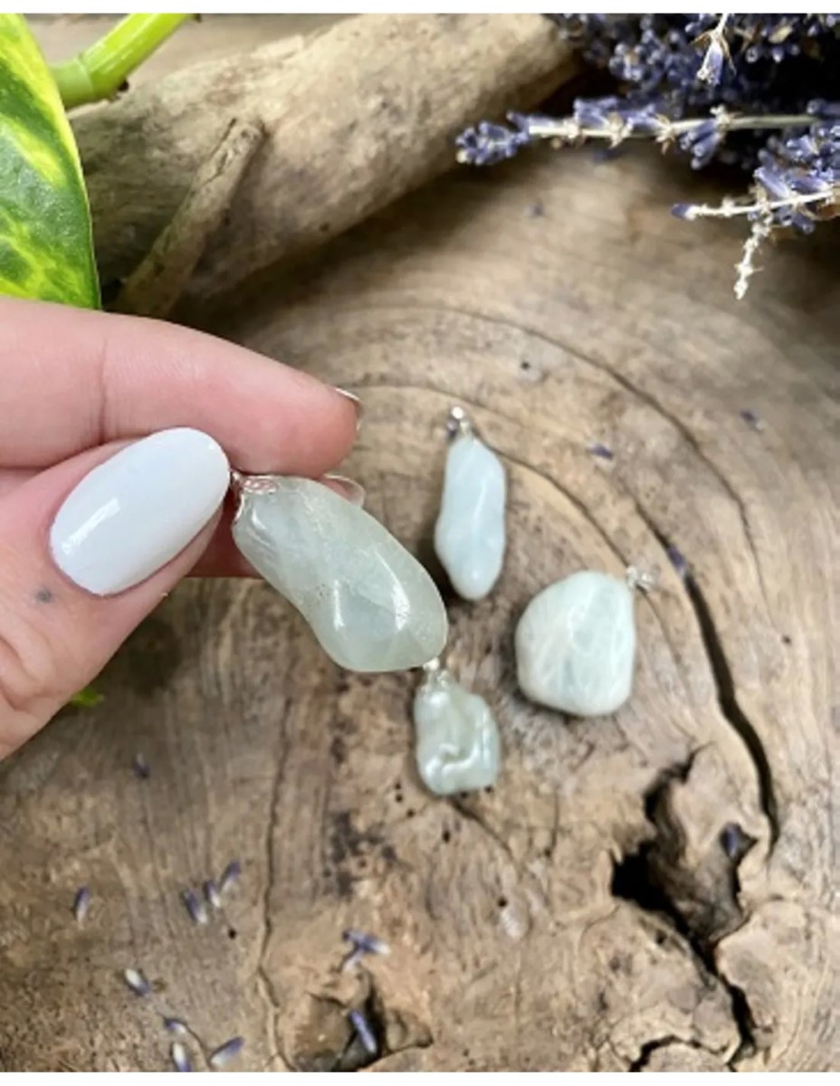 Edelsteenhanger Aquamarijn A geslepen, de kleur is blauwer dan de foto aangeeft.