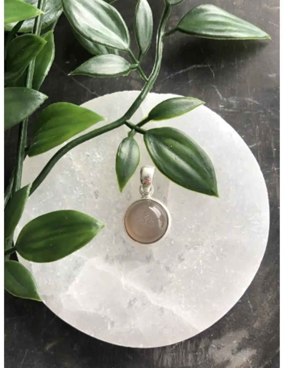 De Maansteen grijs hanger zilver rond kopen