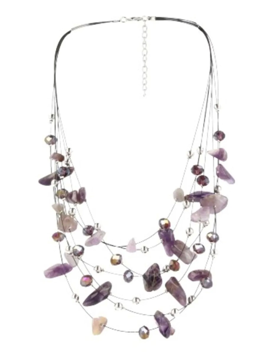 Deze prachtige Amethist multiwire ketting is ca. 42 cm lang. De Amethistketting heeft Amethist kralen, glaskralen en zilverkleurige details. De ketting is nikkelvrij. Deze Amethist multiwire ketting past perfect bij iedere outfit!