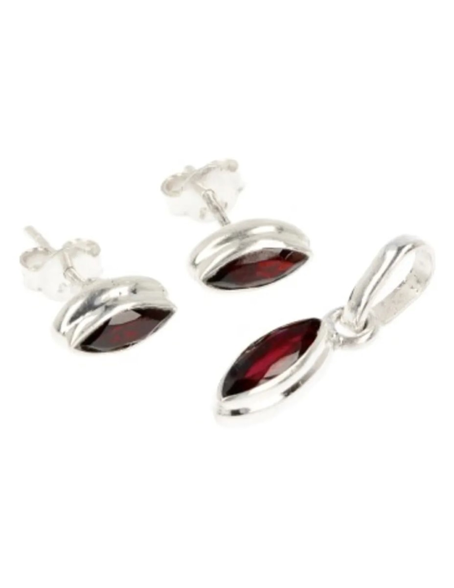 Zilveren oorstekers met Granaat, facet geslepen in markiesvorm.