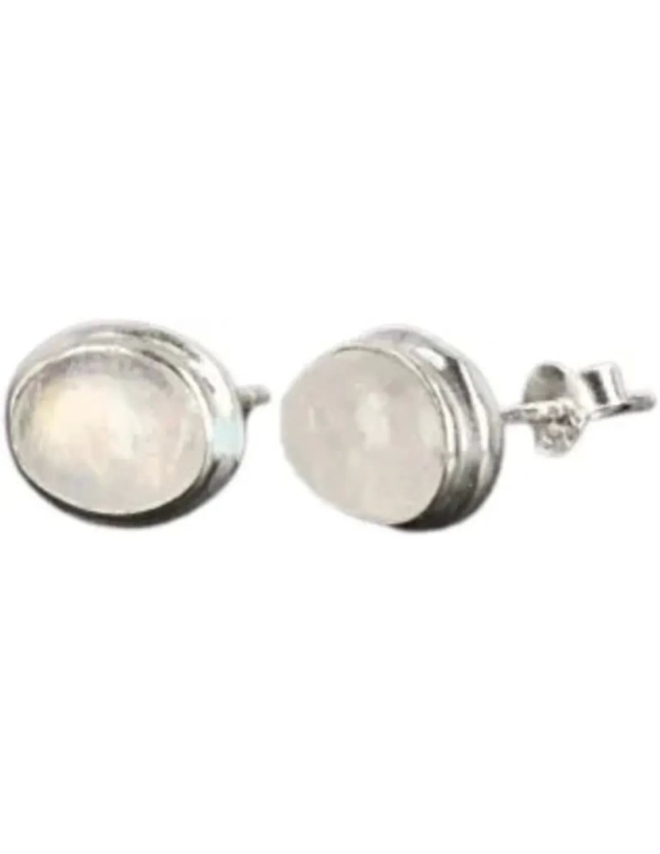 Zilveren oorstekers van Maansteen regenboog. De steen is ca. 6 mm lang.
