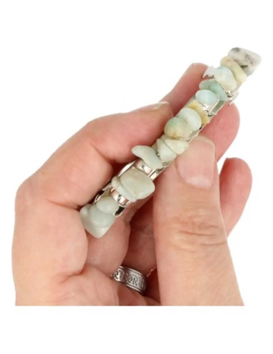 Amazoniet (ook wel Amazonesteen genoemd) is een edelsteen die evenwicht en balans brengt. De steen helpt je om je eigen waarheid onder ogen te komen en daarbij woorden in daden om te zetten. Amazoniet bevorderd harmonie met jezelf en tussen mensen en is daarom zeer geschikt om te gebruiken bij het oplossen van conflicten. Het mineraal helpt je om angsten voor confrontaties en oordelen te overwinnen en brengt evenwicht bij stemmingswisselingen, verdriet, angst en trauma’s. Amazoniet heeft een positieve werking op stofwisseling, de huid, tanden, hersenen, thymus, zenuwstelsel, hypofyse en intuïtie. Tevens ondersteunt het bij herstel van allerlei lichamelijke aandoeningen.