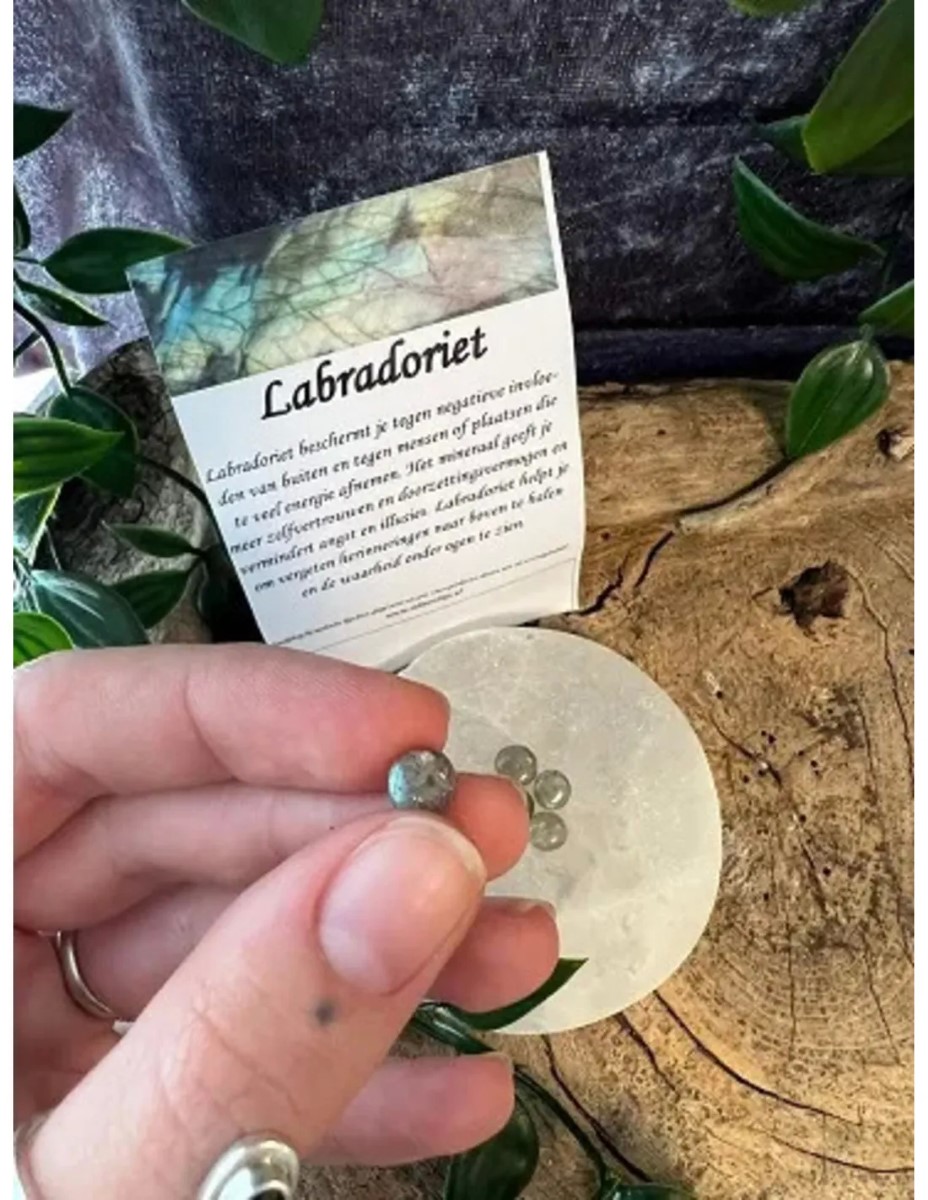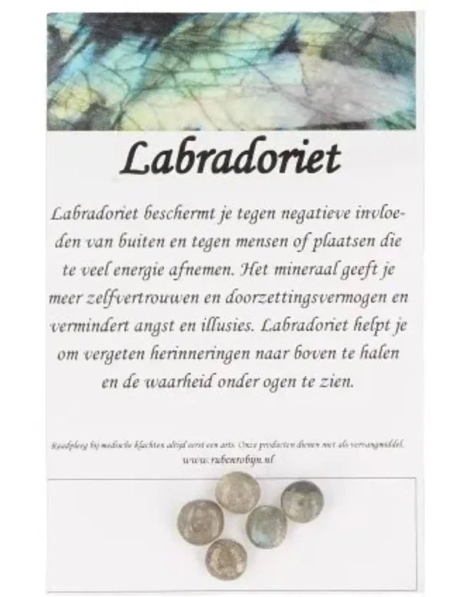 Labradoriet kan bescherming bieden bij invloeden van buitenaf. Ook beschermt Labradoriet je tegen mensen of plaatsen die te veel energie afnemen. De steen bevordert moed, zelfvertrouwen en doorzettingsvermogen. Labradoriet werkt heilzaam bij verkoudheid, reuma en menstruatieklachten. Labradoriet haalt herinneringen naar boven. De steen stimuleert je fantasie, waardoor je jouw ideeën op een creatieve manier weet neer te zetten.