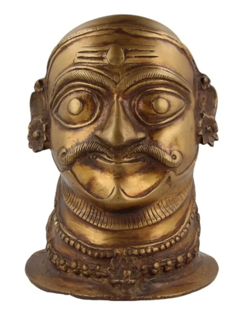 Bronzen beeld van een mannelijk gezicht, 22 cm hoog.