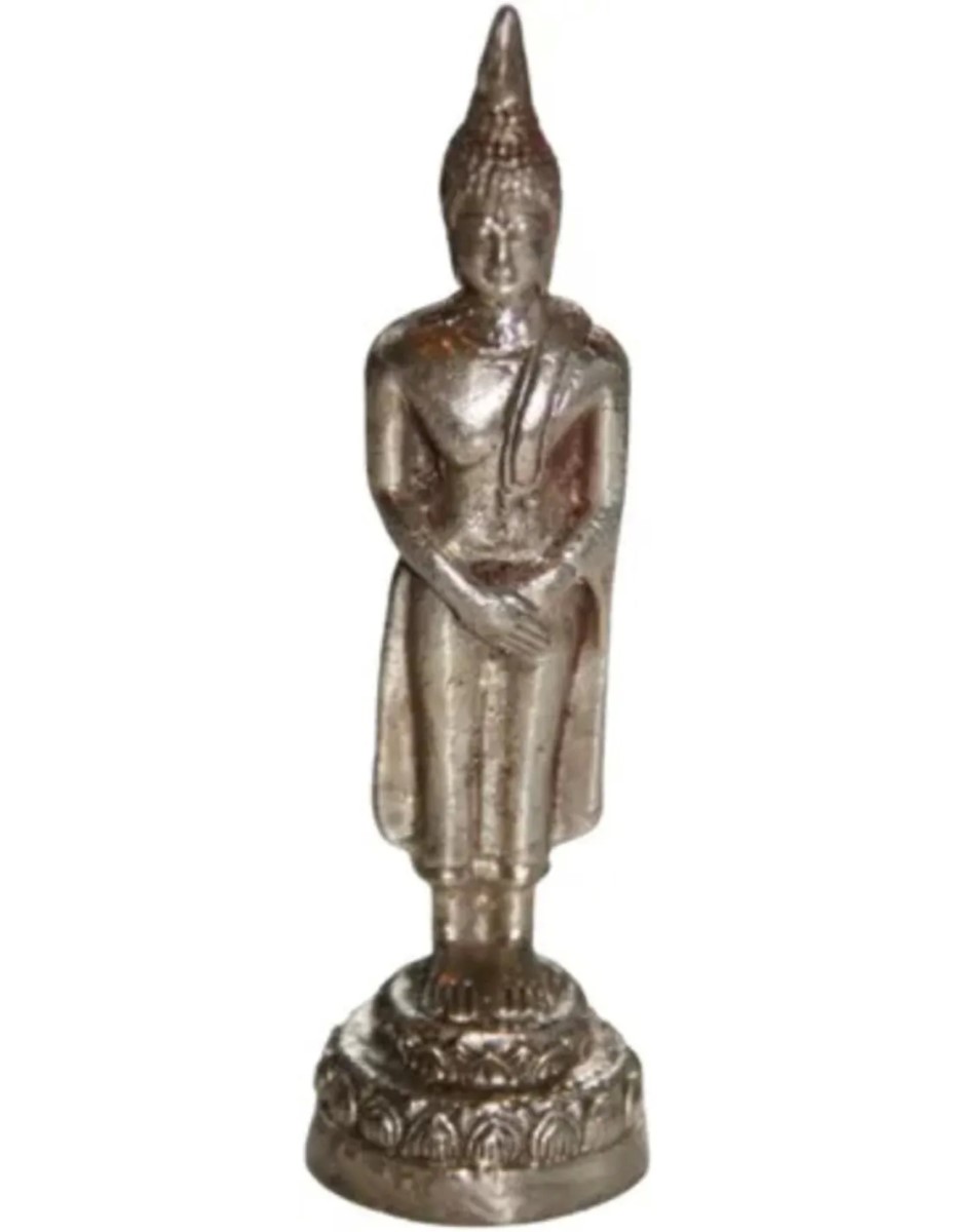 Mooi zwaar boeddha beeldje van brons met verzilverde toplaag. Dagbeeldje van de dag ZONDAG.