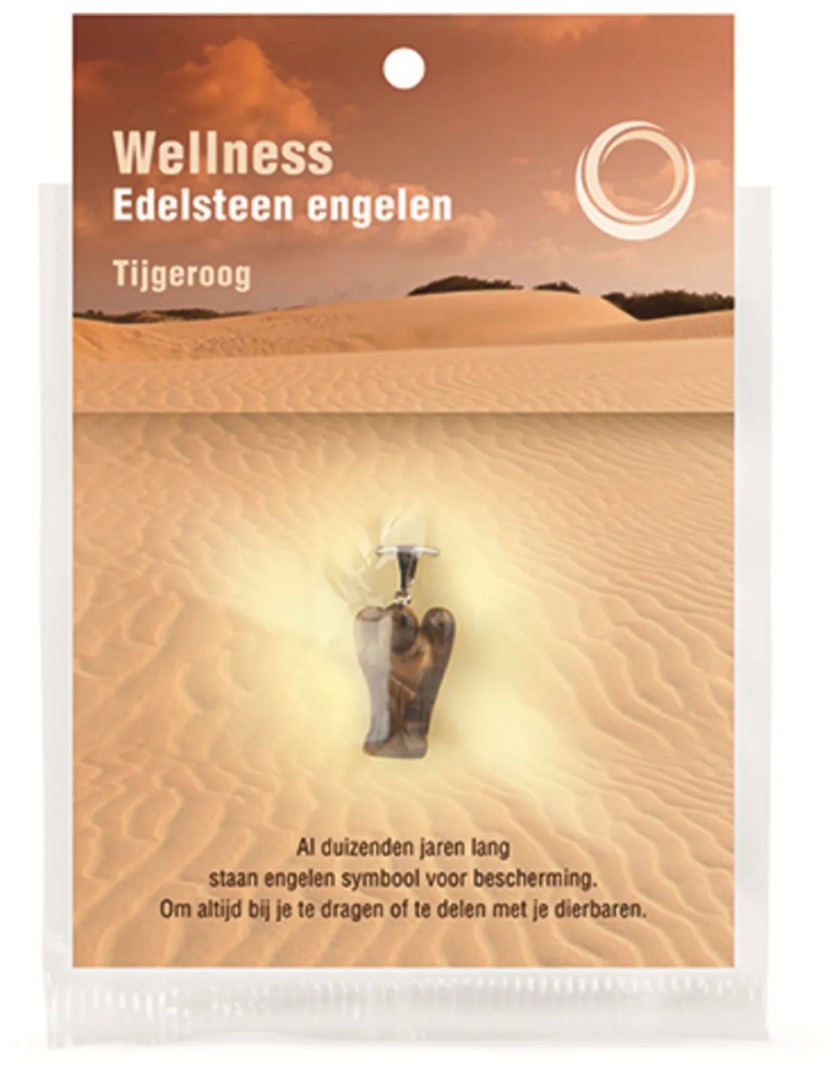 Tijgeroog engelenhanger op displaykaartje. De hanger is 20 mm.