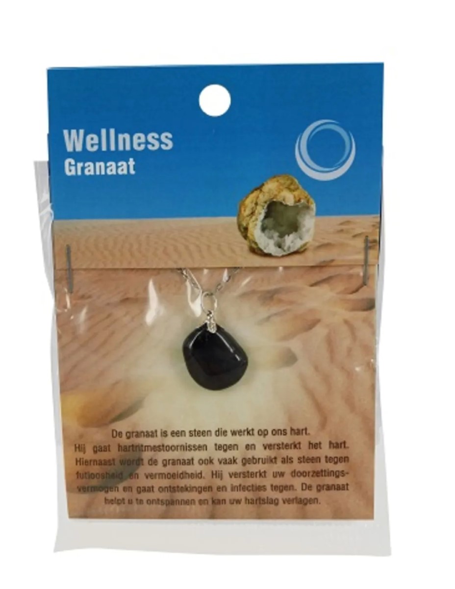 Gezondheidshanger Granaat, edelstenen hanger op een displaykaartje incl. RVS ankerschakel kettinkje