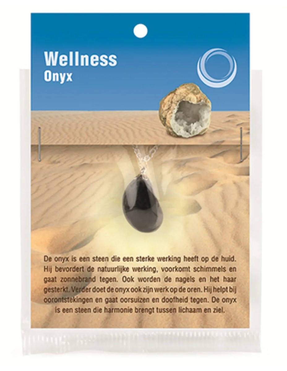 Gezondheidshanger Onyx edelsteen hanger op een displaykaartje incl. RVS ankerschakel kettinkje