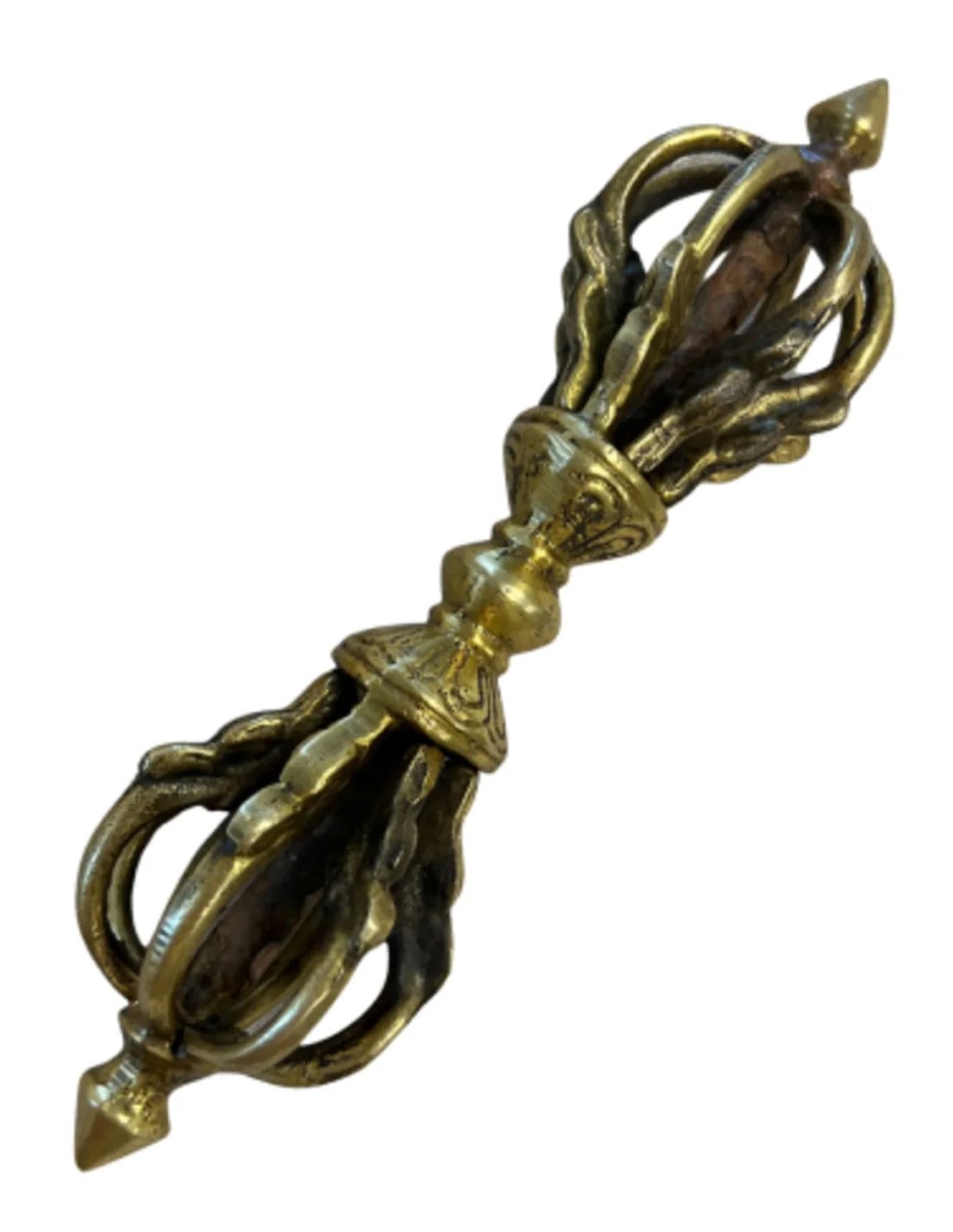 Een dorje, ook bekend als de vajra in het Sanskriet, is een krachtig en symbolisch ritueel voorwerp. Het heeft de vorm van een kleine, dubbelzijdige scepter met een bol aan elk uiteinde, omgeven door stralende punten. De dorje vertegenwoordigt de onverwoestbare aard van bewustzijn en staat symbool voor bliksemsnelle, onbuigzame helderheid van inzicht. In het boeddhisme wordt het vaak gezien als een symbool van verlichting.