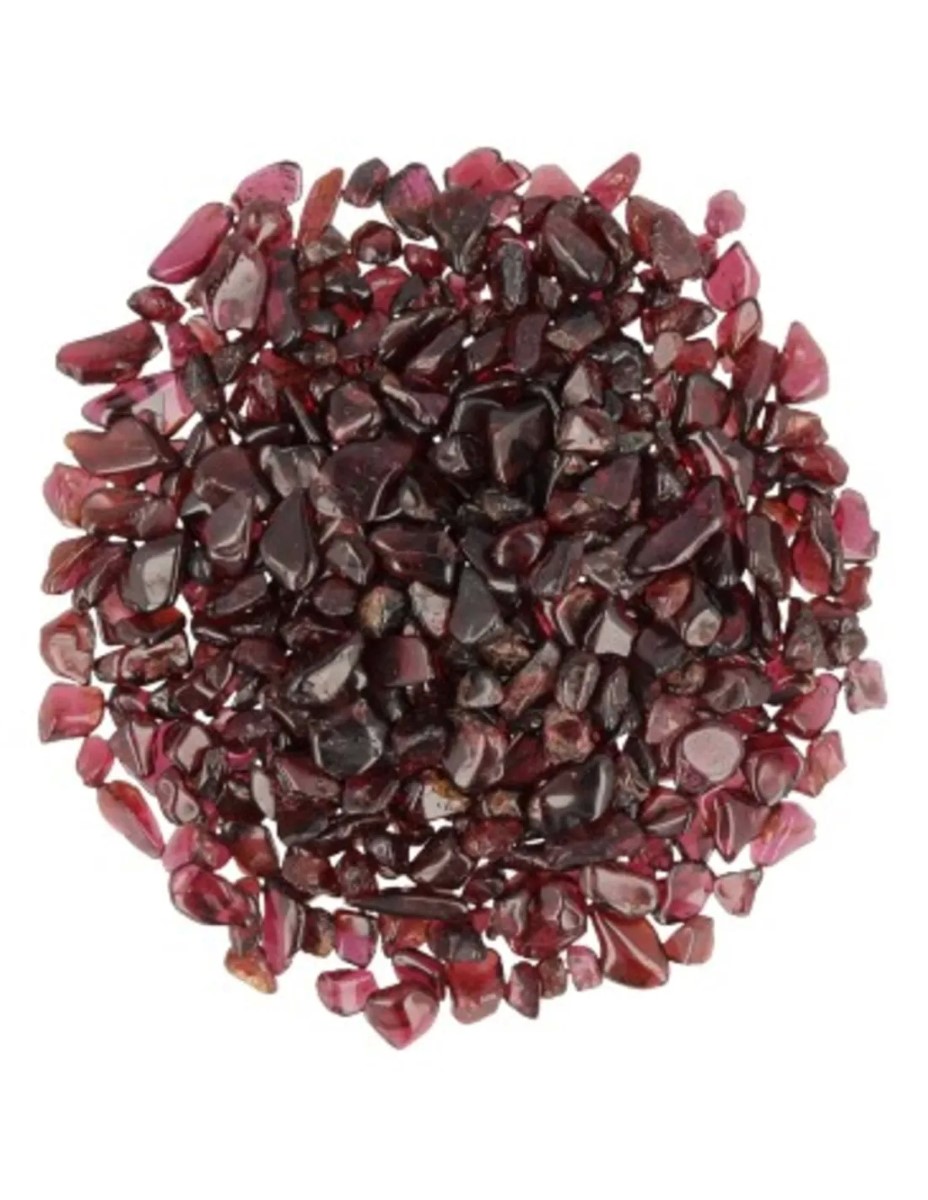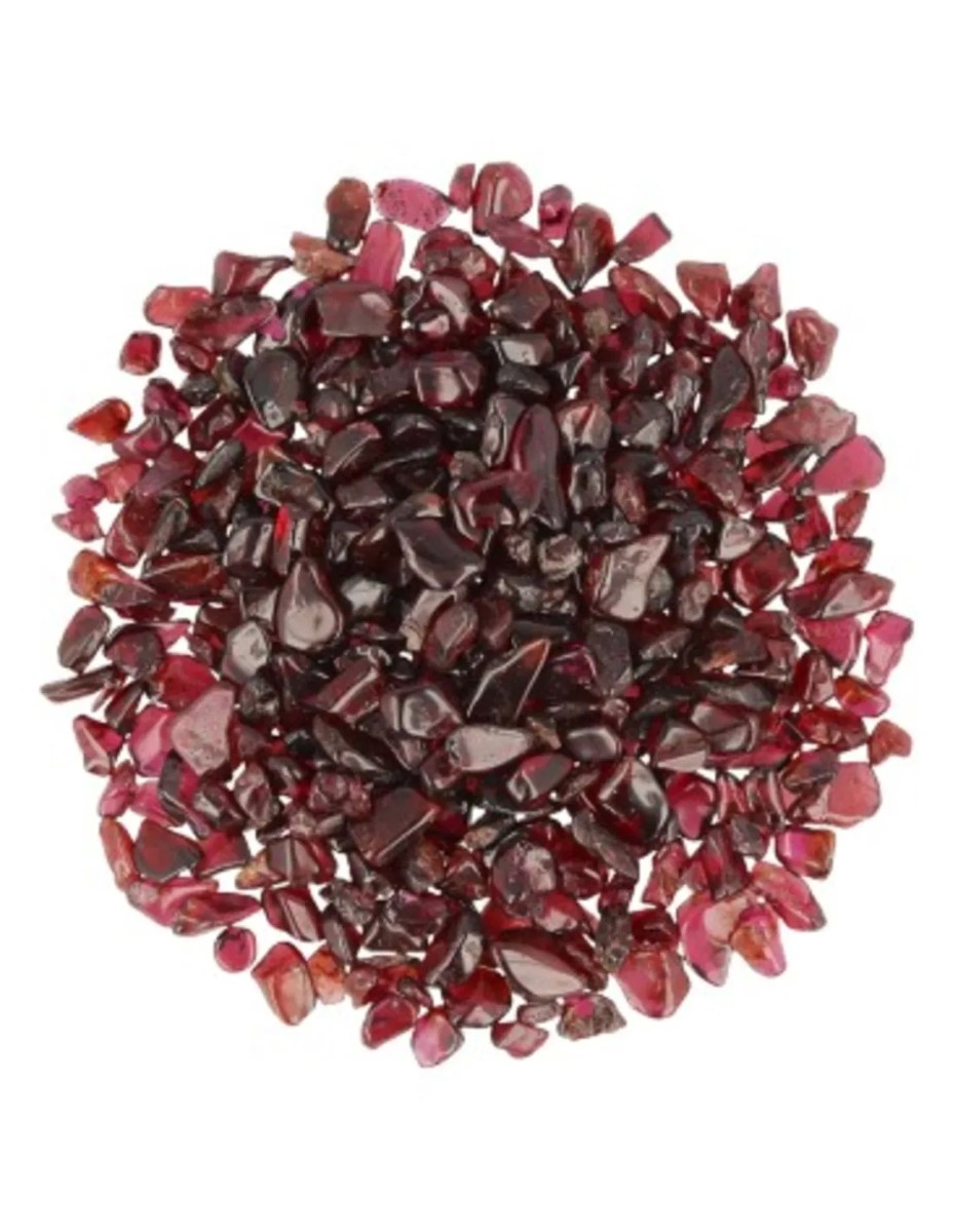 250 gram Granaat trommelstenen in splitformaat van ca. 5 tot 10 mm. Ideaal voor het maken van bijvoorbeeld Orgonites.
