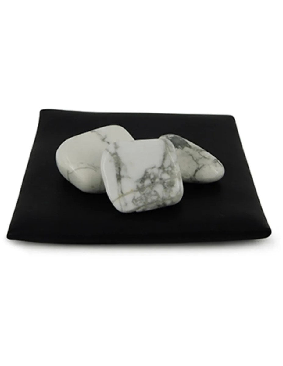 Een zakje met daarin 250 gram knuffelstenen van de half-edelsteen witte Howliet, de maten liggen tussen 2 en 4 cm. De vindplaats van deze Howliet is Zimbabwe. Gebruik ze in een kristalgrid, draag ze bij je of geef ze cadeau! Let op, de stenen die je ontvangt kunnen afwijken van de foto, elke steen is uniek.