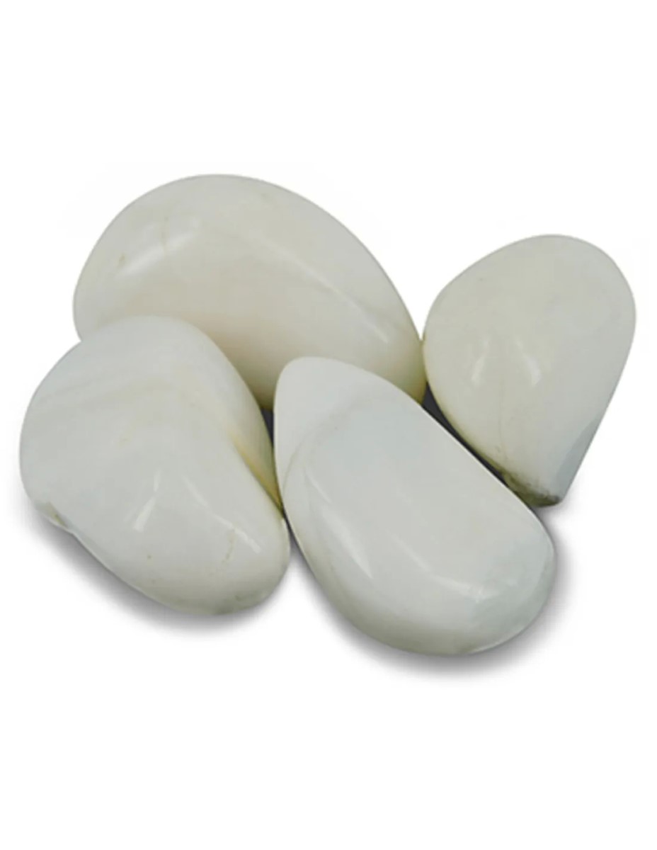 Trommelstenen Opaal wit, de prijs is per gram. Formaat 10-20 mm.