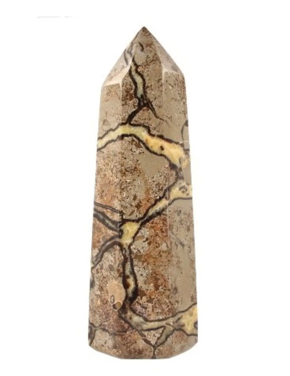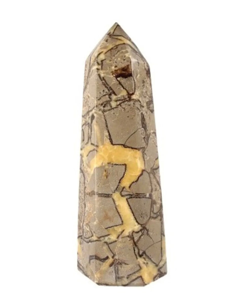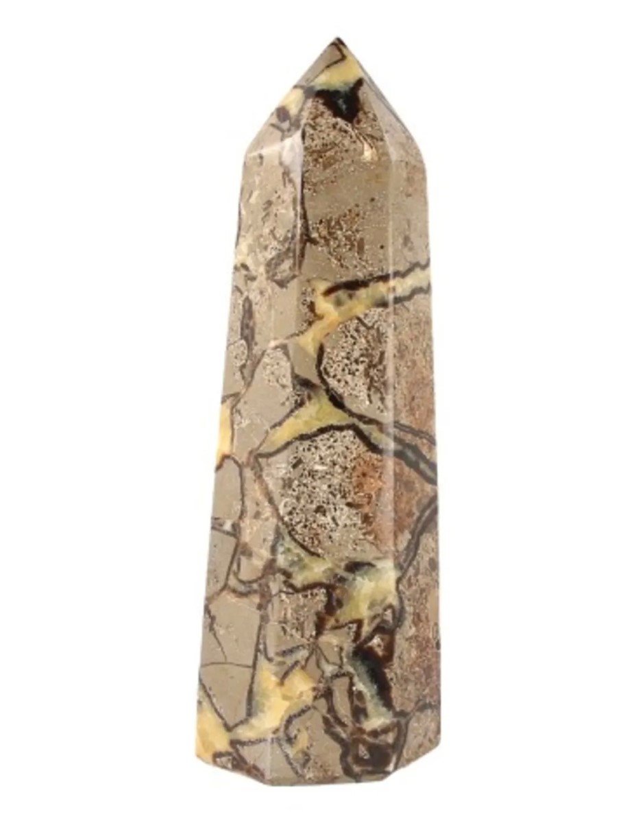Geslepen punt van de edelsteen Septarie, vindplaats Madagaskar. Deze punt is 30 x 10 cm.