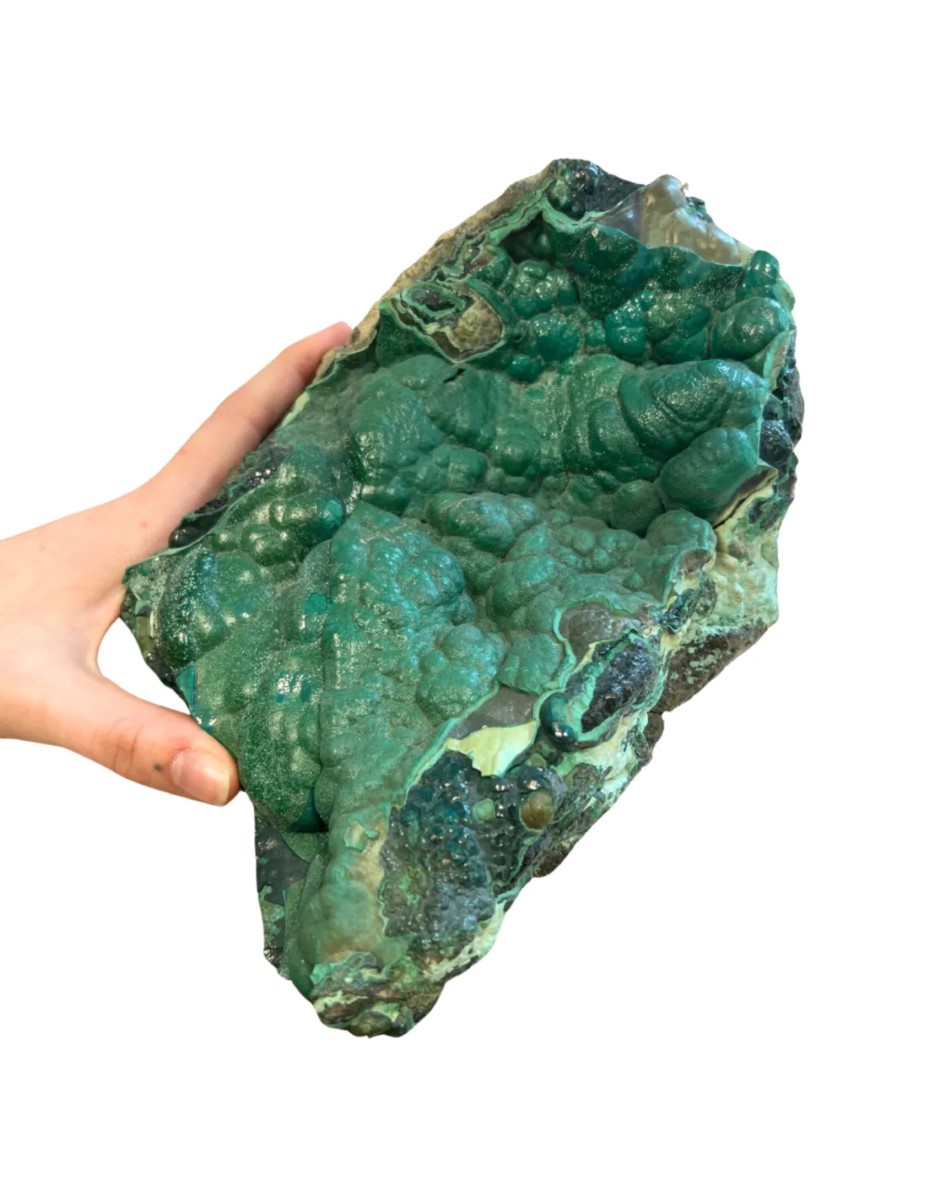Ruwe malachiet uit Congo is bijzonder gewaardeerd vanwege zijn diepgroene, golvende patronen en sterke metafysische eigenschappen. Malachiet staat bekend als een krachtige steen, zowel in termen van fysieke schoonheid als in spirituele en genezende krachten. Deze steen staat ook bekend om zijn vermogen om verandering en spirituele evolutie te bevorderen. Malachiet moedigt risico’s en verandering aan, helpt angsten te overwinnen en stimuleert de gebruiker om uit de comfortzone te stappen. In de traditionele geneeskunst wordt malachiet vaak gebruikt om pijn te verlichten, met name menstruatiekrampen en bevallingspijnen. Het staat ook bekend om zijn vermogen om te detoxificeren, vooral in relatie tot de lever en om het immuunsysteem te versterken.
