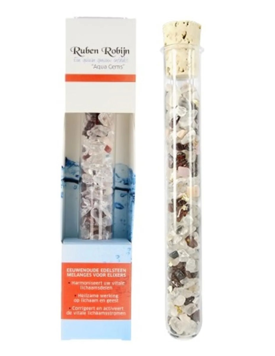 Neem de edelstenenbuis, zet deze in 1 liter water en laat deze 4 tot 6 uur staan. Daarna is de melange drinkbaar met een goede werking. Langer laten rijpen met de buis in het water is prima. Na verwijdering van het buisje neemt de werking van de melange langzaam af.