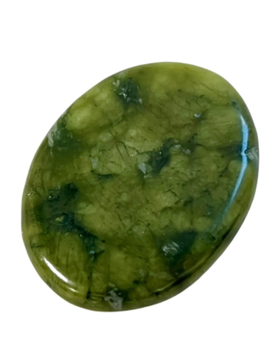 Mooi groene edelsteen zaksteen van Serpentijn. Deze vorm is ideaal om in je zak te doen om zo je steen bij je te dragen.